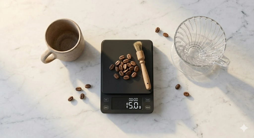 A implementação da balança atua como um sistema de controle de qualidade. Ela transforma o preparo do café em um processo auditável. Ao seguir uma proporção fixa, como 1:15 (1 grama de café para cada 15 gramas de água), você elimina a maior variável de erro do processo.