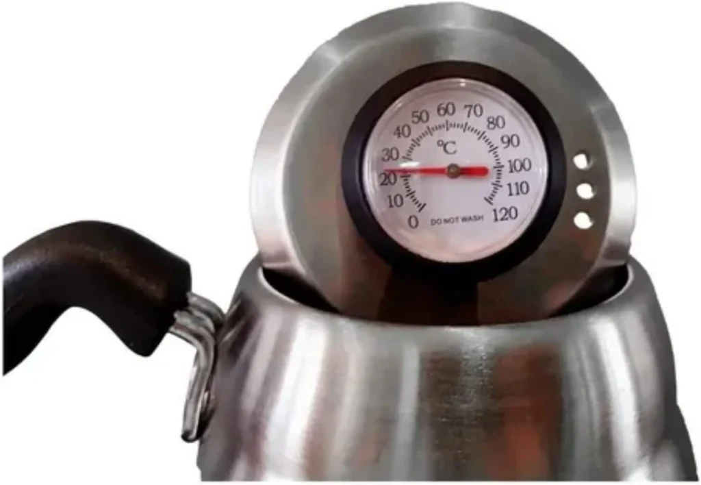 Além disso, modelos mais modernos, especialmente as chaleiras bico de ganso elétricas, trazem um termômetro embutido ou controle digital de temperatura. Isso elimina a necessidade de esperar a água esfriar “no olho”, garantindo que você comece a extração exatamente aos 93°C ou 96°C, conforme o recomendado para torras claras e médias.