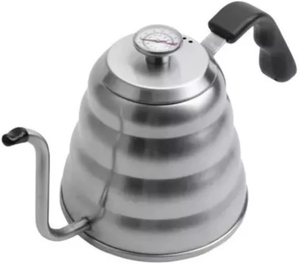 A chaleira bico de ganso recebe esse nome devido ao seu pescoço longo, fino e curvado, que se assemelha ao pescoço de um ganso. Diferente das chaleiras tradicionais, onde o bico é largo e curto, a saída de água na gooseneck acontece pela base da chaleira, permitindo que o fluxo seja ditado pela gravidade e pela inclinação suave da mão, e não pela pressão do volume total de água.