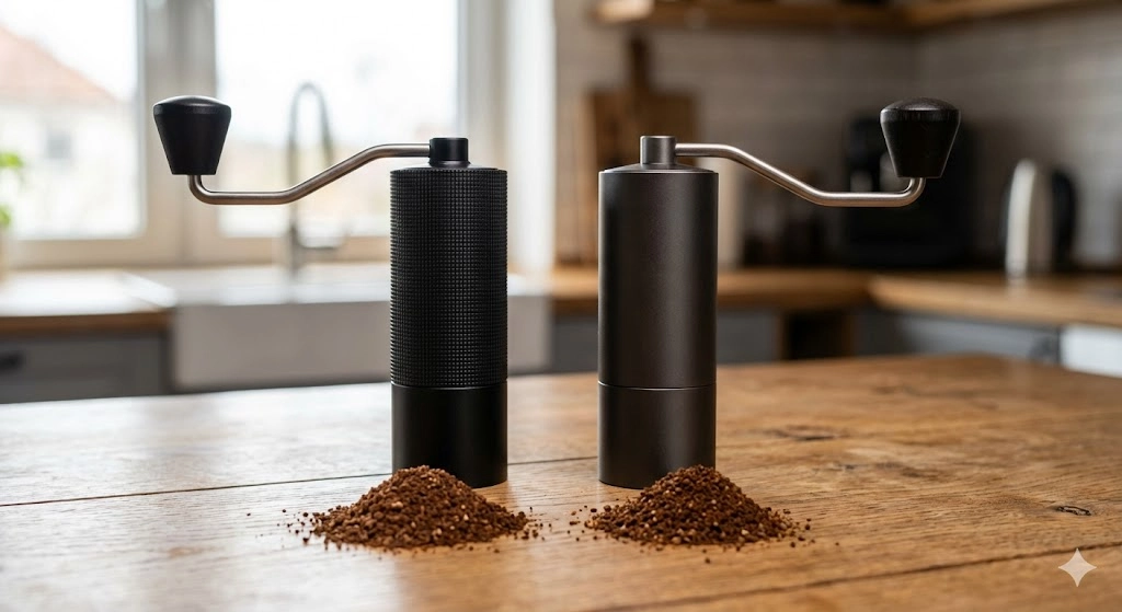 Para conseguir um moedor elétrico de mós (burr grinder) que entregue a mesma qualidade de um moedor manual intermediário, você precisaria investir três ou quatro vezes mais. Os moedores manuais utilizam mós (cônicas de cerâmica ou aço) que esmagam o grão de forma controlada, permitindo ajustes precisos de espessura.